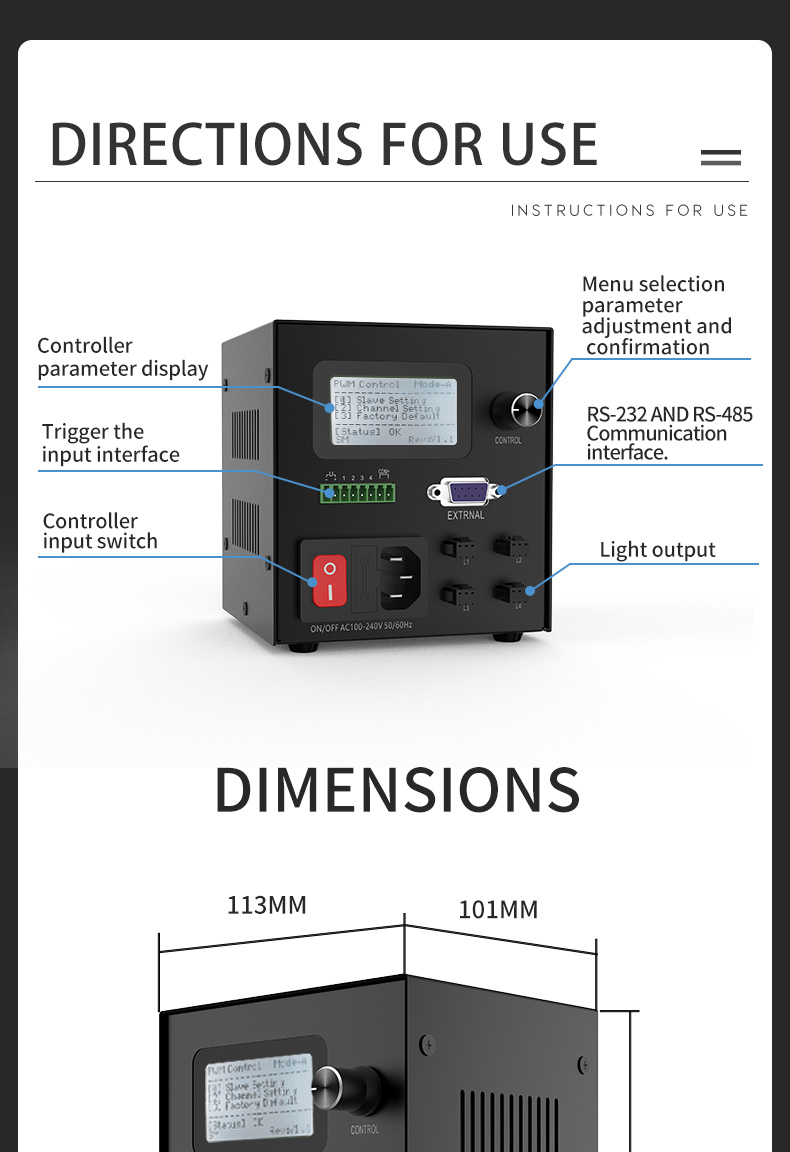 It is mainly used to control machine vision and industrial inspection LED light sources.