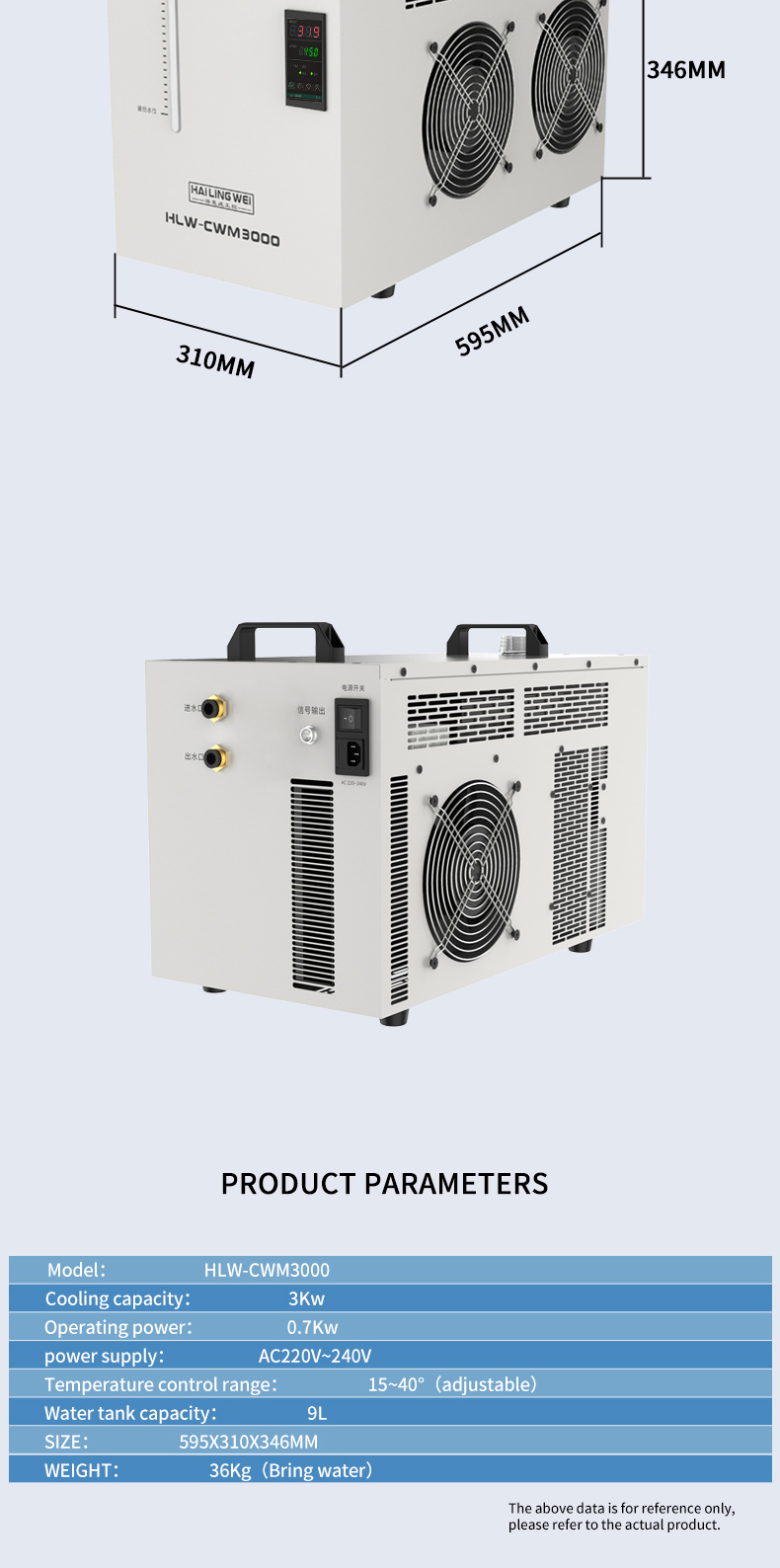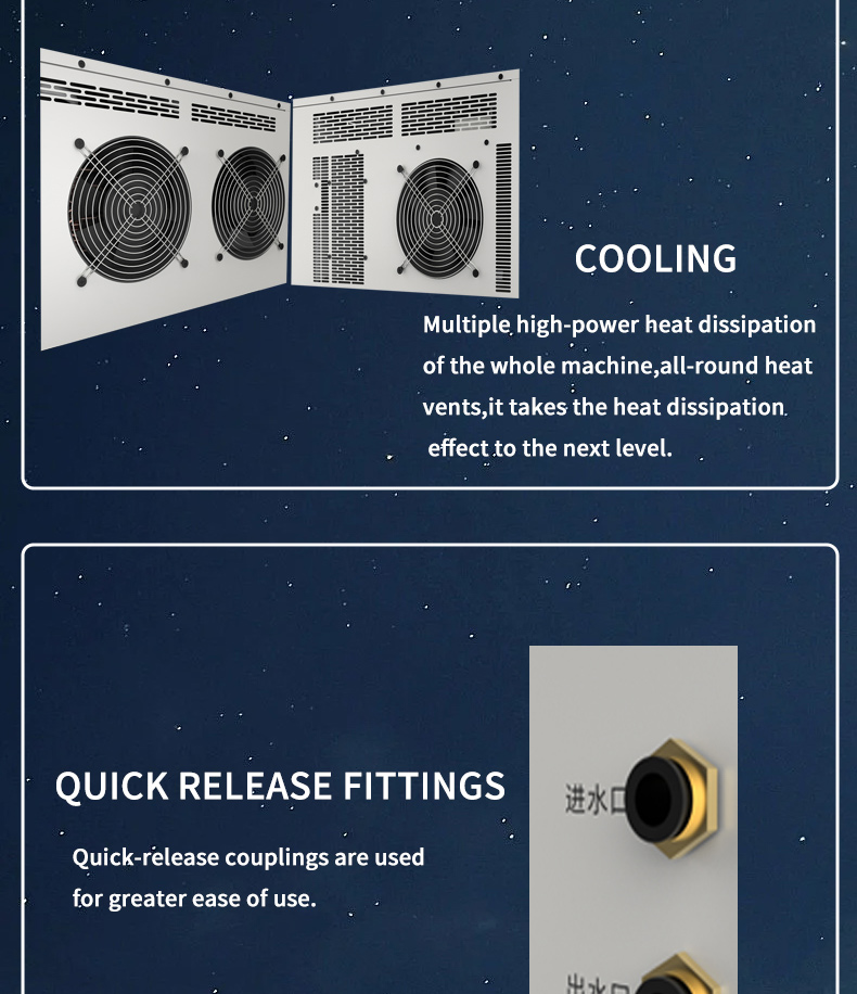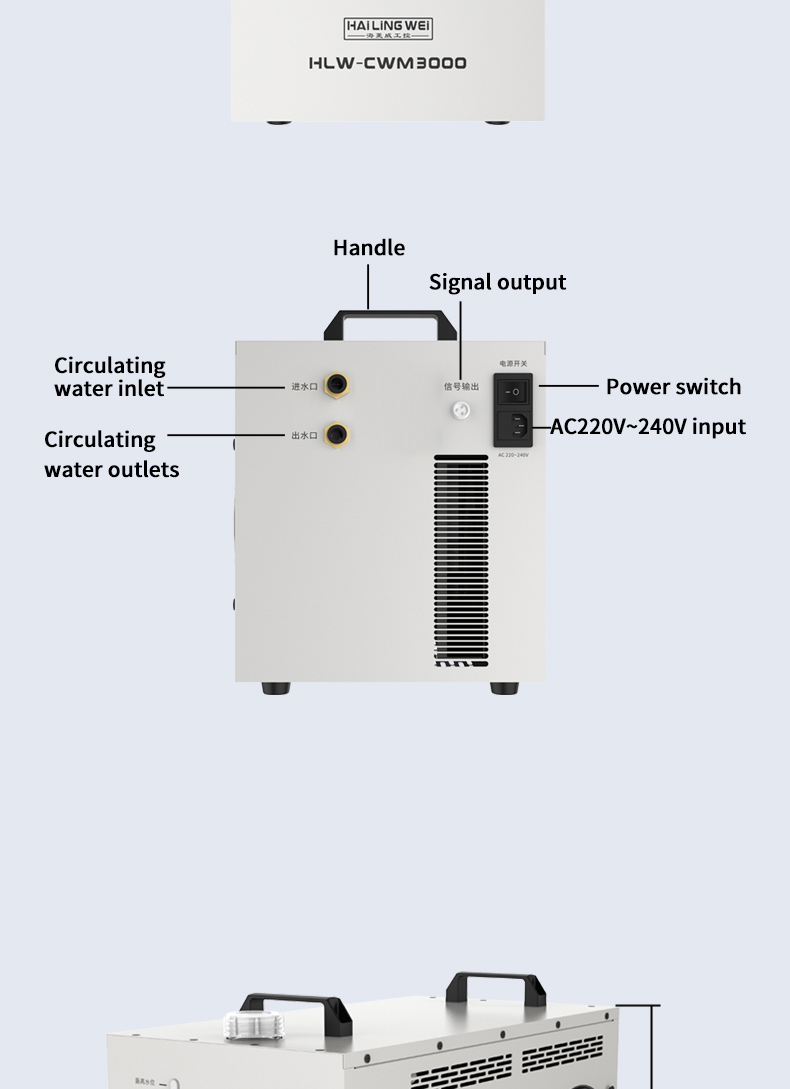 A certain amount of water is injected into the internal tank of the machine, and the water is cooled by the chiller cooling system, and then the water is inside the machine